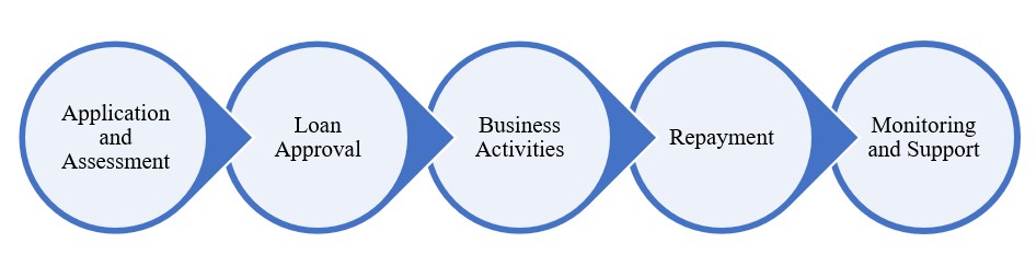 The lending process follows particular steps that distinguish it from processes of other institutions. Most importantly, it maintains the support of small entities and poverty alleviation as its main objectives.